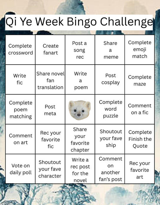 This year will have a bingo card with Qi Ye-themed games and challenges to complete! How many can you do in seven days?